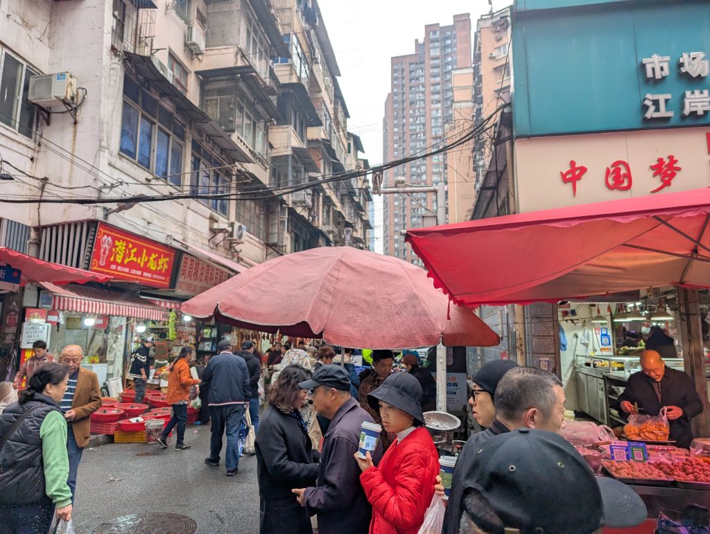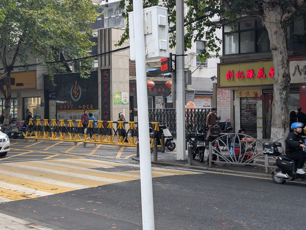 从武昌站出发,四号线从复兴路换乘五号线到司门口黄鹤楼站,从 A 口出来后沿民主路向长江方向行走,还能顺带经过户部巷吃个早饭。早上正好下雨,因此地面非常非常滑,这路修的实在一般。