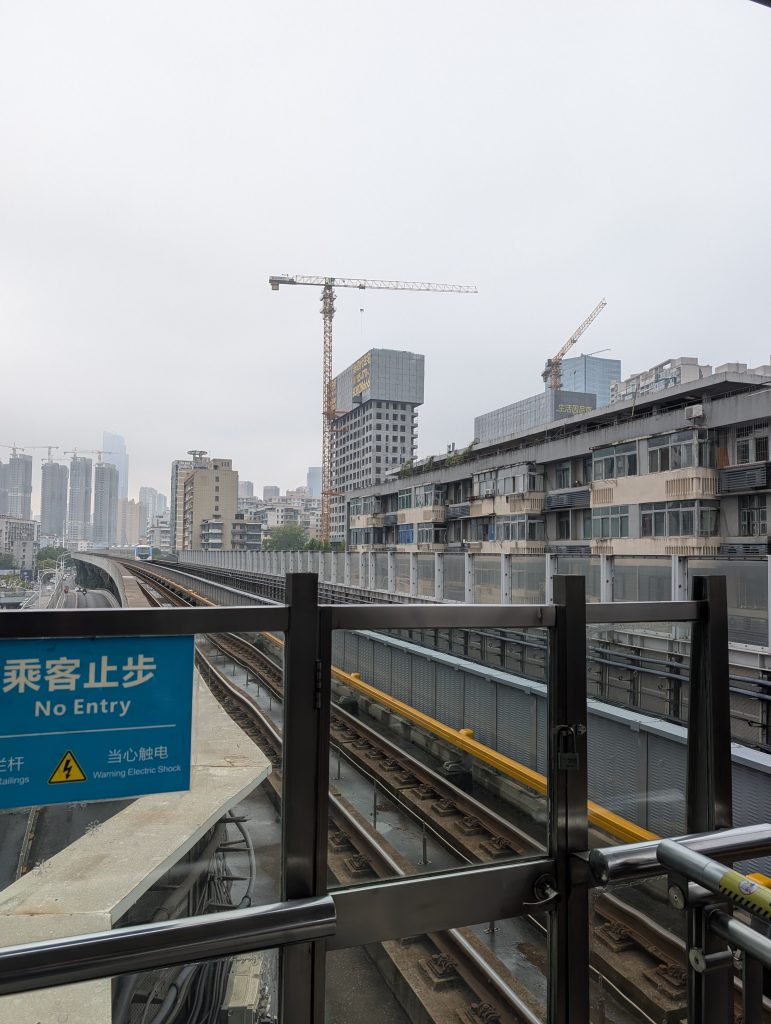半封闭屏蔽门 + 高架站台总是有不错的景色,特别这里还是第三轨供电。