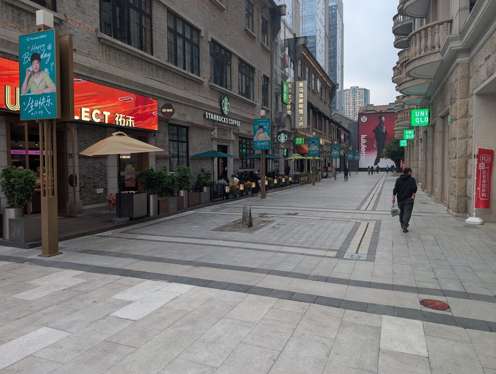 选一个开心的地方离开公园(最优应该是 3 号门,但其实随便哪个门出去后骑车都很方便)。前往鸣笛 1998 商业街。几乎所有的攻略等都会说这个地方简直空完了,到了之后破败的程度依然超过我的想象。不过可以喝口茶颜悦色回点血。