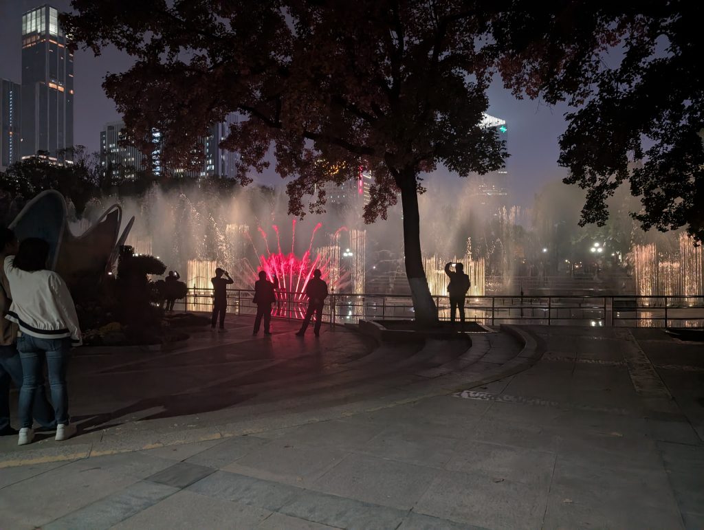比赛后又来到了中山公园看了下音乐喷泉。晚场的效果相当不错,推荐有空来看。和游戏里的相似度也是很高的。和游乐场不同,音乐喷泉的时间会在中山公园的官方发布和更新,出发前请务必核对,以防跑空。